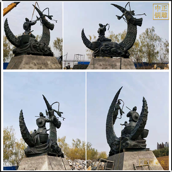 標志性雕塑:標志性的城市雕塑作品發揮了說明性的功能,樹起了形象的標志,有的含蓄生動,寓意深遠,形象優美,鮮明易懂,雅俗共賞,成了城市景觀中的重要部分。